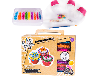 مجموعة أشغال يدوية تتيح تكوين شكل كب كيك باستخدام أدوات بسيطة للضغط والتشكيل. تُستخدم لتشجيع الإبداع وتطوير المهارات اليدوية.