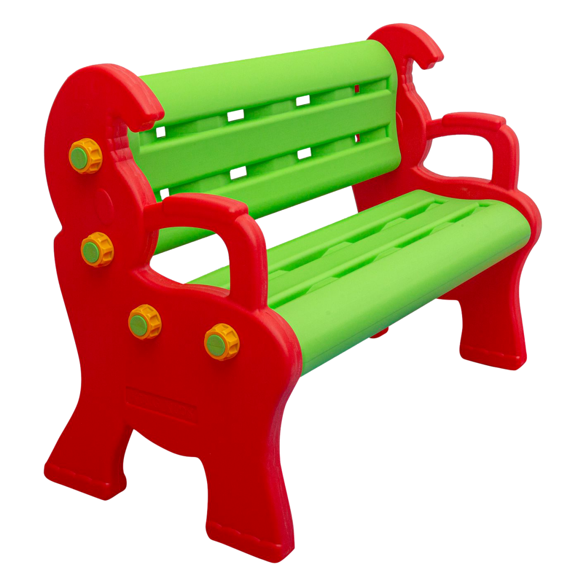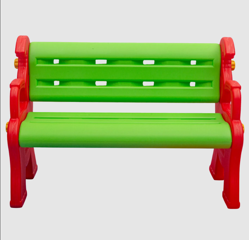 بنش بلاستيكي مصمم للأطفال، يتسع لطفلين أو أكثر، ويصلح للجلوس أثناء أوقات الراحة أو النشاطات الجماعية. يتميز بتصميم مريح وألوان زاهية (أخضر وأحمر) تجعله إضافة مثالية لأي مساحة لعب أو تعليم.