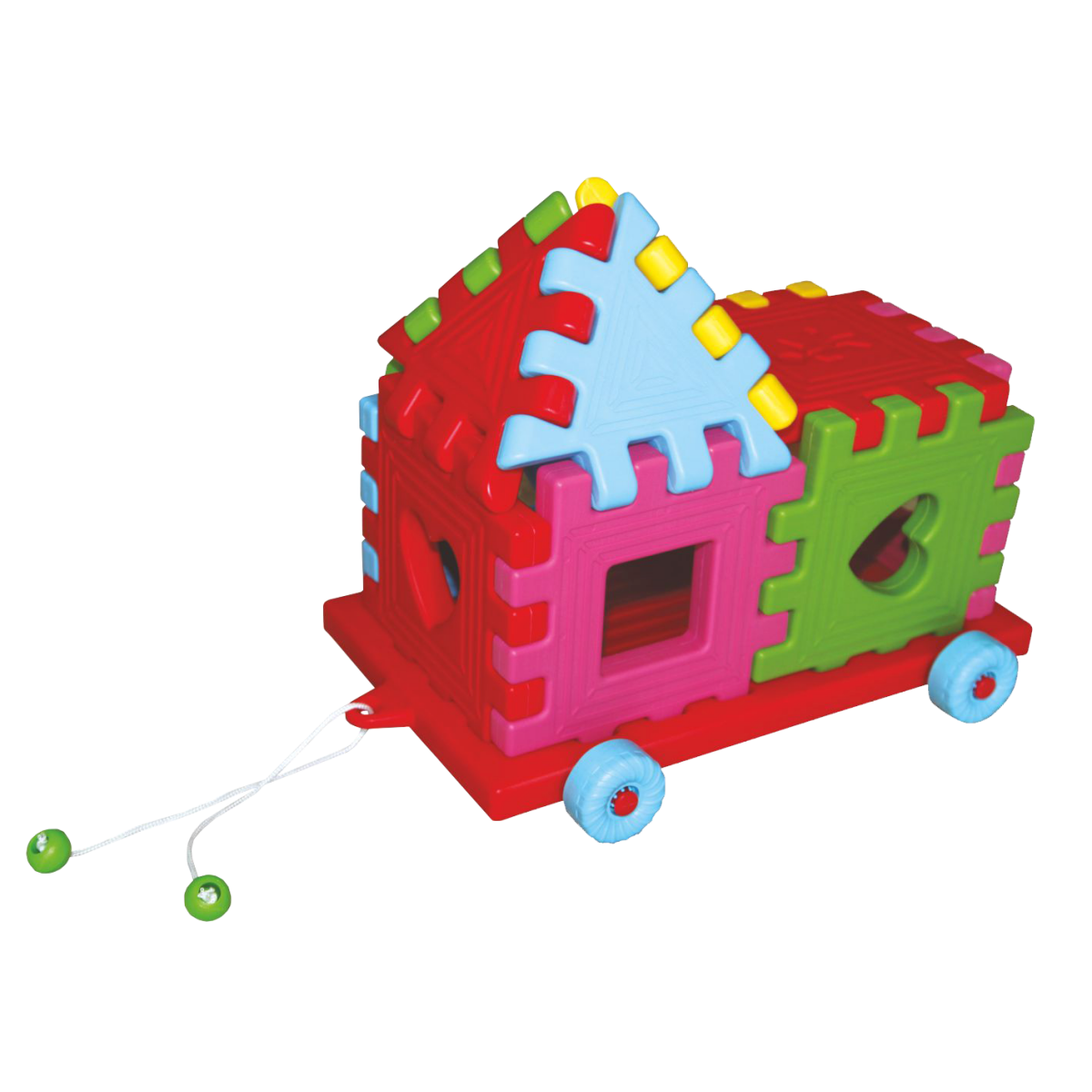 لعبة تعليمية ممتعة بتجمع بين الفك والتركيب والسحب، على شكل بيت متكامل بالألوان الزاهية. الطفل يقدر يفك ويركب القطع على شكل بازل، وفي نفس الوقت يشده بالحبل ويتحرك بيه في أي مكان.