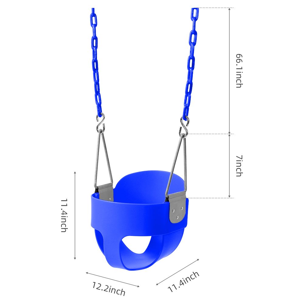 مرجيحة مخصصة للأطفال الصغار مصممة بشكل نصف دائري لتوفير حماية كاملة أثناء الجلوس. تأتي مزودة بسلاسل حديدية للتثبيت الآمن، ومقعد بلاستيكي ناعم ومريح يدعم الجلوس المستقر للأطفال من عمر مبكر. مناسبة للاستخدام الخارجي في الحدائق أو ساحات اللعب.