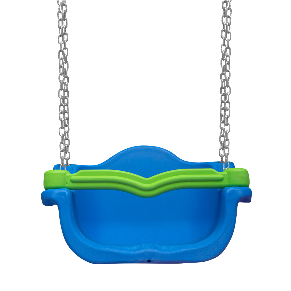 مرجيحة بلاستيكية معلّقة بسلاسل معدنية قوية، مصممة للأطفال الصغار لتوفير تجربة تأرجح آمنة ومريحة. تحتوي على مقعد عميق باللون الأزرق مع حاجز أمامي ثابت باللون الأخضر يمنع الطفل من الانزلاق أثناء الحركة.